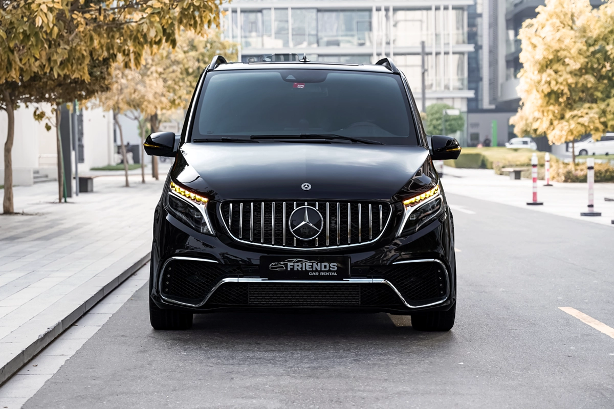 Rent a Mercedes V250 (V-Class) 7-seater van in Dubai from our luxury Mercedes rental and drive it all over the Emirates. FriendsCarRental has brand new Mercedes Benz V Class 2022/23 vans with Chauffeur service. Our fleet of Mercedes-Benz V-Class cars is the ideal solution for big groups, large families, and business or executive travelers.