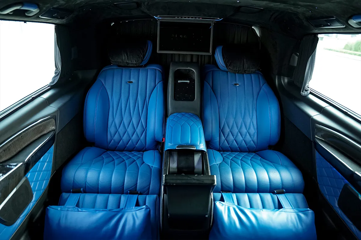 The van's seats can be customized to accommodate both passengers and cargo. You can move the seats to make more space for cargo or configure them for maximum passengers are as comfortable as possible. In addition to its passenger capacity, the V250 offers large cargo space for luggage, equipment, or other things. The rear seats can be folded down to create more cargo space. Premium infotainment systems, safety features, and driver-assistance technologies in V250 make it more convenient and safe.